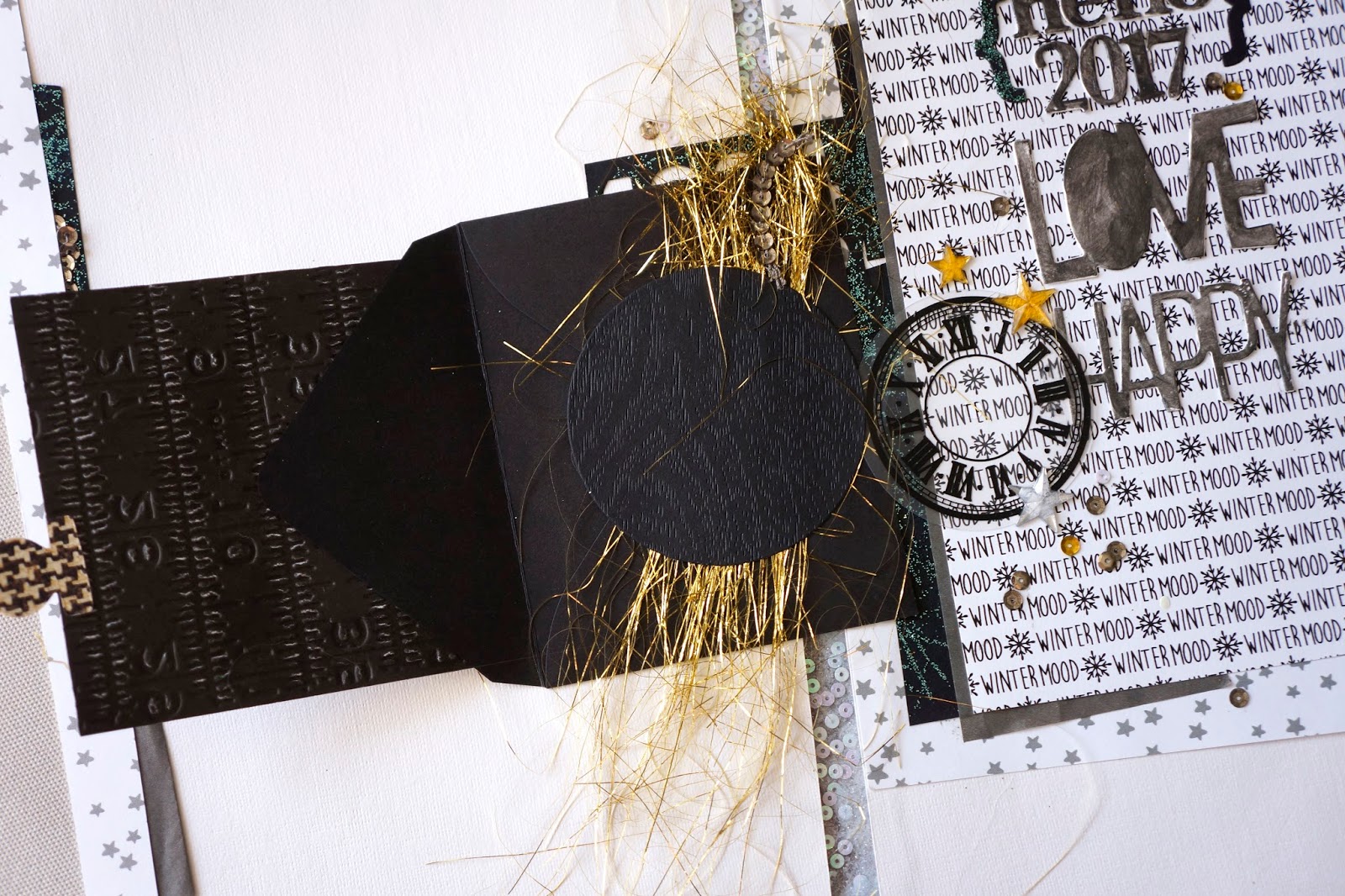 Конечно же, я начала с тематической, как с более сложной. Напомню, что сам конкурс проходил преимущественно в весенне-летнее время, а работы надо было делать не просто зимними, а еще и узкоспециализированными, новогодними )) и если "про зиму" скрапится достаточно часто, то сам Новый Год обычно удел декабрьских ежедневников и собственно на этом и все )) а тут, мало того, что еще июнь, начало лета, а уже надо подвести итоги года, прямой телепорт в декабрь ))